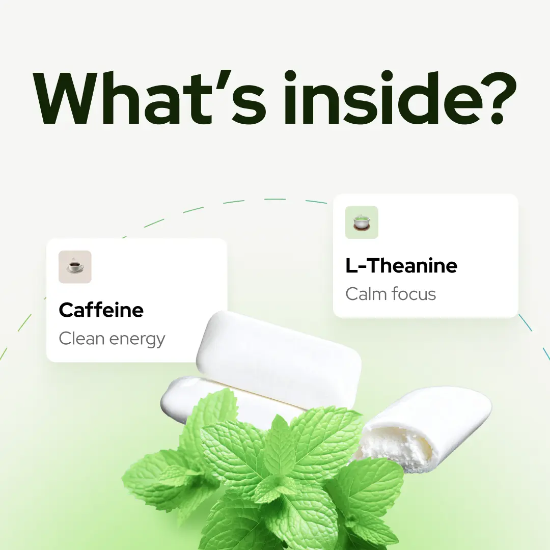 A nootropic chewing gum designed to support focus, mental clarity, and steady energy, whenever you need it.